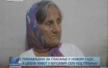 Ovaj put riječ je o starim, gotovo nepokretnim licima koja godinama nisu ni izlazila na birališta. Prijavljeni su na adresi u Novom Sadu iako oduvijek žive u selu nadomak Trebinja. Na ovakve pojave upozoravali su iz gradskog odbora SNSD u Trebinju gdje se, sa istim problemom, javilo oko stotinu lica. Sumnja se da su zloupotrijebljeni lični podaci pojedinih lica, a ...