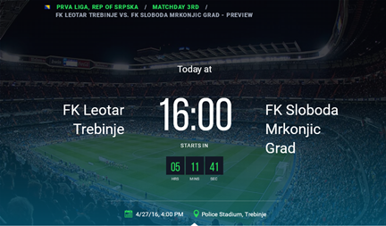Danas na utakmicu: Fudbaleri Leotara dočekuju Slobodu iz Mrkonjić Grada in Sport, Sve vijesti 27/04/2016 0 TweetDanas u 16:00 Leotar igra protiv FK Slobode iz Mrkonjic Grada dodjite da podrzite Leotar! Ulaz slobodan! TweetShare this:Click to share on Twitter (Opens in new window)Click to share on Facebook (Opens in new window) Related 2016-04-27 koraknaprijed tweet